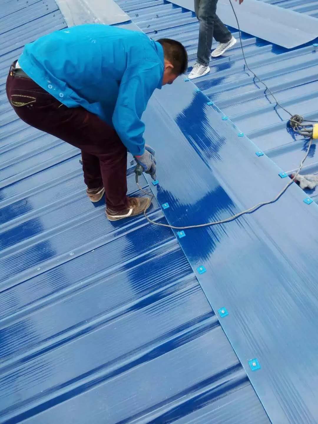 5. 采光板固定时,必须使用良好的泛水垫圈,使之介于螺丝与采光板之间,以便于防水防尘。将泛水垫圈套入螺丝内以后,用电钻锁入檩条内,即完成采光板的固定工作。